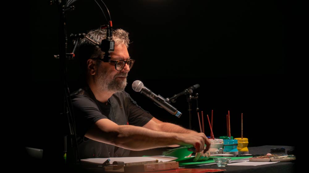 Entonces, lo que a mí me da orgullo del show es que está pasando eso, que está mezclada bien la música con el dibujo, el humor, a veces me permito yo hacer contrapunto a lo que está haciendo Kevin, yo por acá estoy haciendo unos chistontos que la gente se ríe, y él no rompe la cara de seriedad.