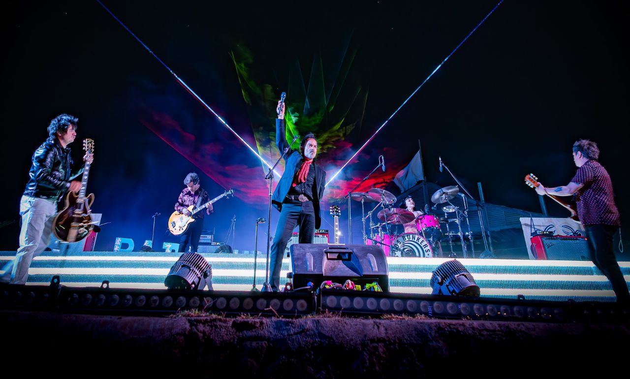 Cancamusa, baterista del grupo, viaja junto a su mánager y una realizadora audiovisual. A los hermanos Gonzalo y Álvaro López -bajista y vocalista respectivamente- los acompaña su familia, al igual que a los hermanos Francis y Mauricio Durán, a cargo de los teclados y guitarras. La caravana incluye al staff de Los Bunkers, liderado por su mánager, el uruguayo Tabaré Couto. Además, viaja un equipo de prensa conformado por medios chilenos y uno internacional: ROLLING STONE en español.