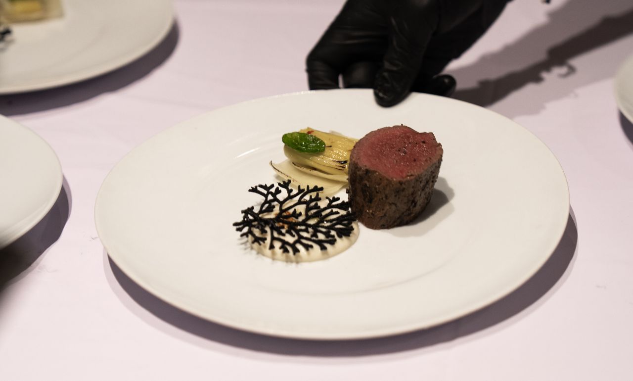 Desde el otro extremo del país, en el escenario agreste donde el desierto se encuentra con el mar, Grand Velas Los Cabos apostó por la fuerza. Su solomillo con puerro en mantequilla, berenjena y ajo fermentado fue una sinfonía de elementos primarios: tierra, fuego, viento. Una cocina de “fuerza contenida”, que dialoga con la rudeza del paisaje sin perder elegancia.