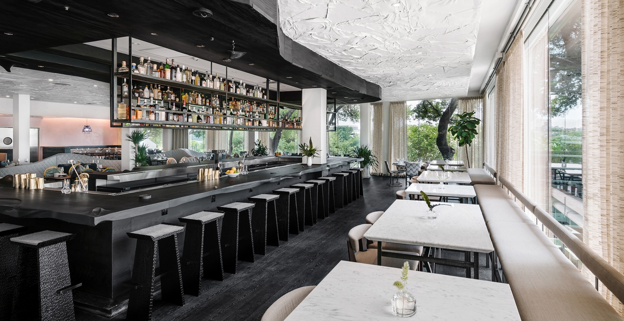 Este espacio, con un comedor junto con el calor de una acogedora chimenea y una barra de ostras de mármol, es perfecto para disfrutar de cócteles après ski y deliciosas comidas. Destacan las ostras de la costa este y oeste, el cioppino y la famosa hamburguesa con gruyere, especialmente popular durante la happy hour, cuando se acompaña de martinis y bocados de ostras a mitad de precio. El restaurante también ofrece un menú especial de caviar, huevos y champán para quienes quieran probar el lado más lujoso y gustativo de Aspen.