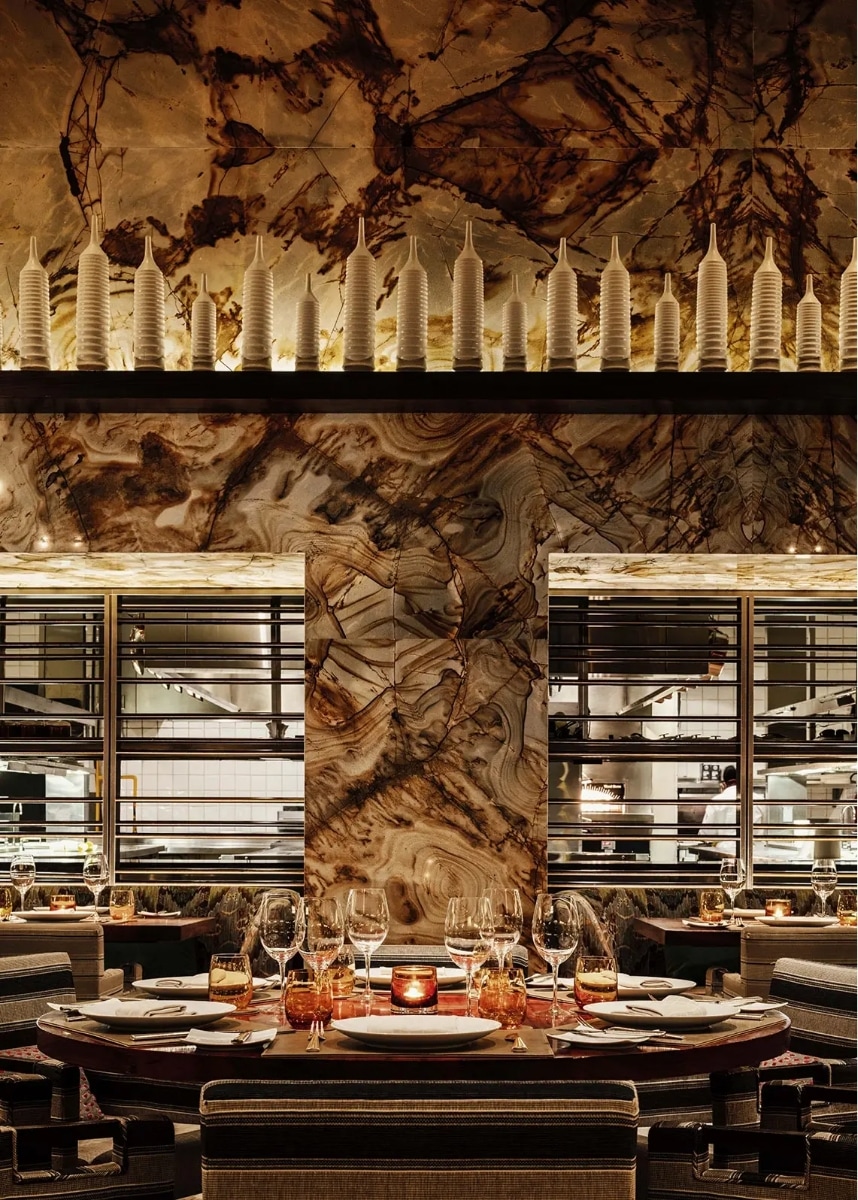 El diseño del restaurante, a cargo de Jeffrey Beers International, fusiona sofisticación y comodidad con elementos que rinden homenaje a la estética mexicana. Los tonos cálidos del mármol, las lámparas ámbar y los pisos con patrones geométricos de inspiración azteca crean un ambiente elegante y acogedor. Además, el establecimiento también ofrece la opción de cenar al aire libre en la terraza con vista al océano, convirtiendo cada comida en una experiencia inolvidable en medio de la naturaleza.