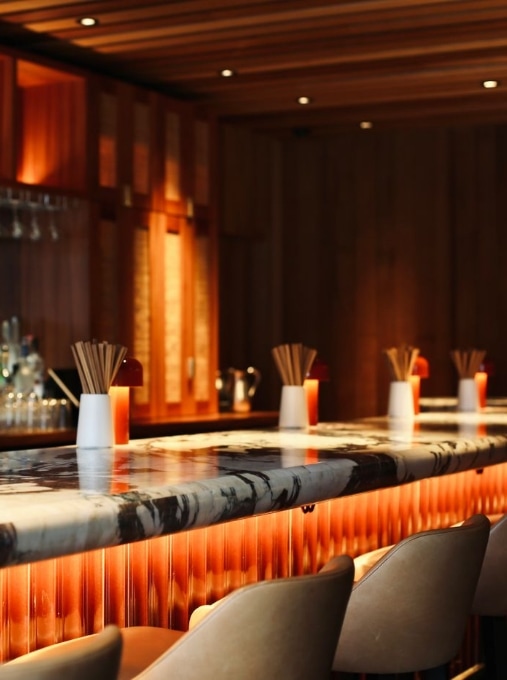 Además de su carta llena de opciones y sabores por descubrir, SWAY cuenta con un impresionante catálogo de bebidas. Cócteles emblemáticos como el Monk Water, con sandía y menta, y el Lotus Margarita, con borde de tamarindo, son refrescantes complementos de la picante cocina. El restaurante también ofrece refrescos de la casa, vinagres para beber, una selección de cervezas, sake y una extensa carta de vinos que expone la calidad de la viticultura de Aspen.