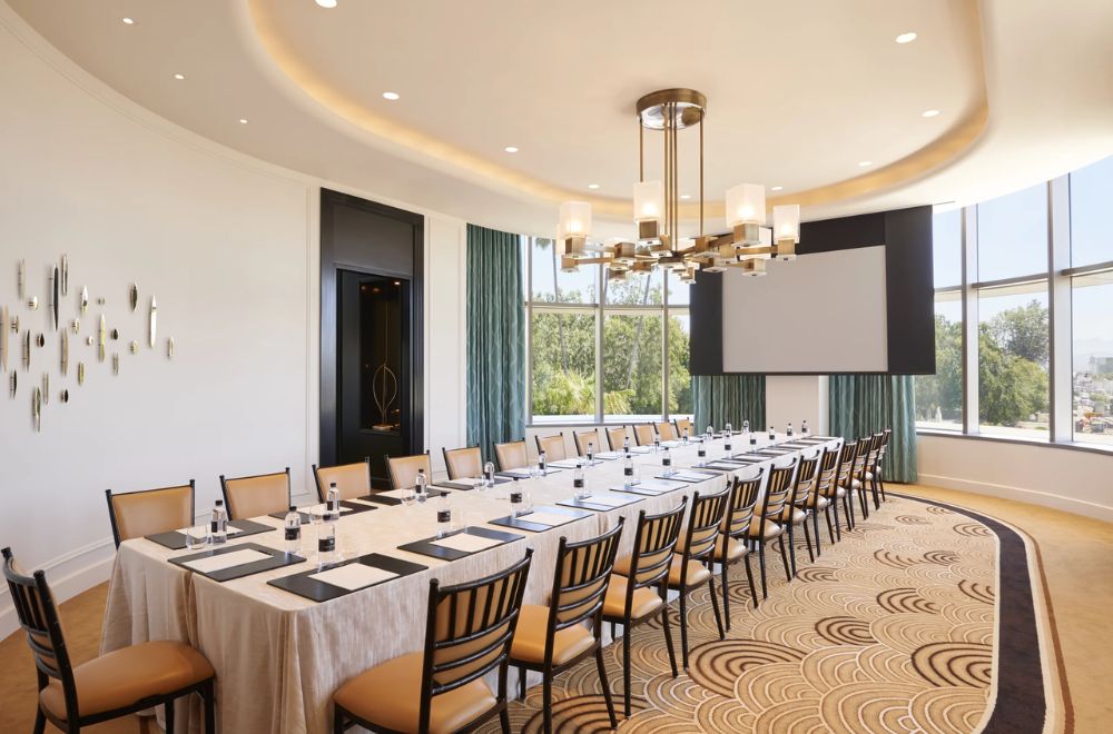 El Waldorf Astoria Beverly Hills también es un escenario perfecto para eventos y reuniones. Con una gran área de espacios adaptables, el hotel cuenta con una infraestructura ideal para albergar desde juntas privadas hasta grandes celebraciones. El Salón de Fiestas Astor, con capacidad para 300 personas, ofrece un entorno versátil y amplio, mientras que la elegante Habitación Waldorf se llena de luz natural gracias a sus ventanales y su chandelier central. Además, la sala de juntas ejecutiva, ubicada en el nivel Mezzanine, es el espacio perfecto para reuniones privadas con equipos de alta tecnología y un ambiente sofisticado.