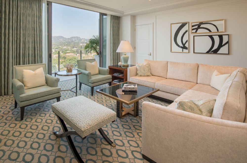 Para quienes buscan mejores espacios, la Suite Junior Corner Superior se extiende en 63 metros cuadrados e incluye una terraza de 23 metros cuadrados, ideal para disfrutar de una vista panorámica a los vibrantes paisajes urbanos de Beverly Hills y sus espectaculares atardeceres. Con un salón independiente y un área de entrada en mármol italiano, esta suite ofrece a sus huéspedes un ambiente amplio para el entretenimiento, tanto en el interior como al aire libre.
