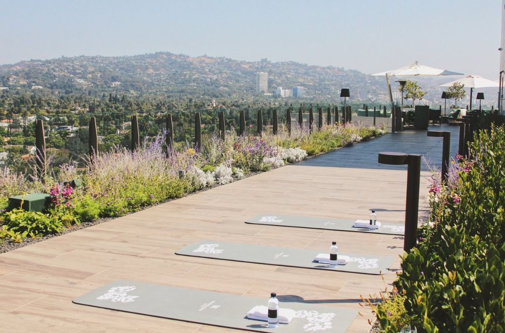 Para los huéspedes que deseen mantener su rutina de ejercicio, el gimnasio del hotel ofrece una completa gama de equipos, complementados con sesiones de entrenamiento personal. Además, en asociación con Alo Moves de Alo Yoga, el Waldorf Astoria permite a sus visitantes disfrutar de clases de yoga y bienestar desde la comodidad de sus habitaciones mediante un código QR personal. También se ofrecen sesiones en la última planta del hotel, combinando ejercicios aeróbicos y HIIT bajo la guía del entrenador Jai Jordan. Esta actividad, gratuita para dos huéspedes por habitación, ofrece la posibilidad de ejercitarse con vistas panorámicas de Beverly Hills.